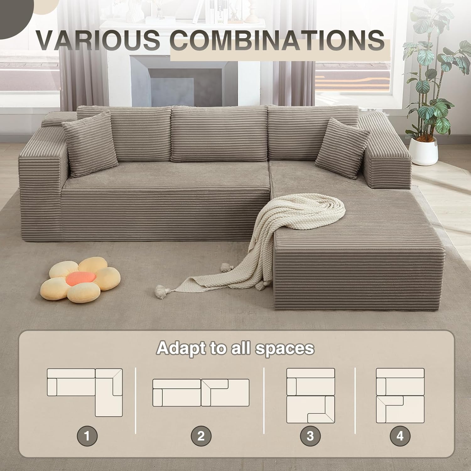 Luxury Modular L-Shape Foam Corduroy Sofa MOQ100 Sofa Compressed Foam Design Custom Colors Sizes Summary: Elegant L-shape corduroy modular foam sofa offering premium comfort, custom options, and low MOQ for commercial purchasing.